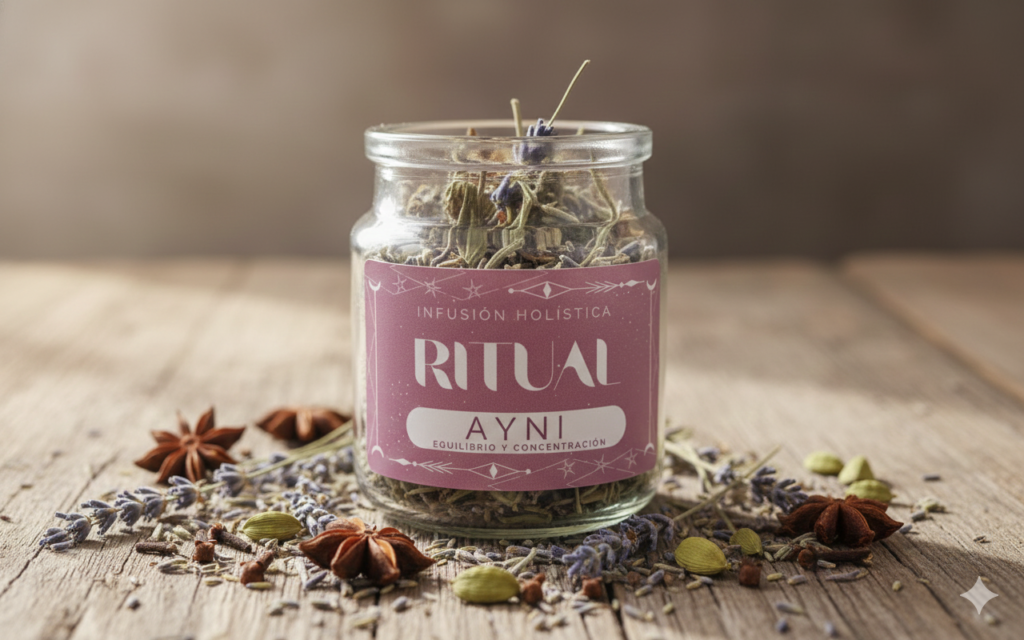 Ayni representa la reciprocidad y el balance. Una mezcla pensada para enfocar la mente, armonizar emociones y acompañar momentos de estudio o trabajo consciente.
