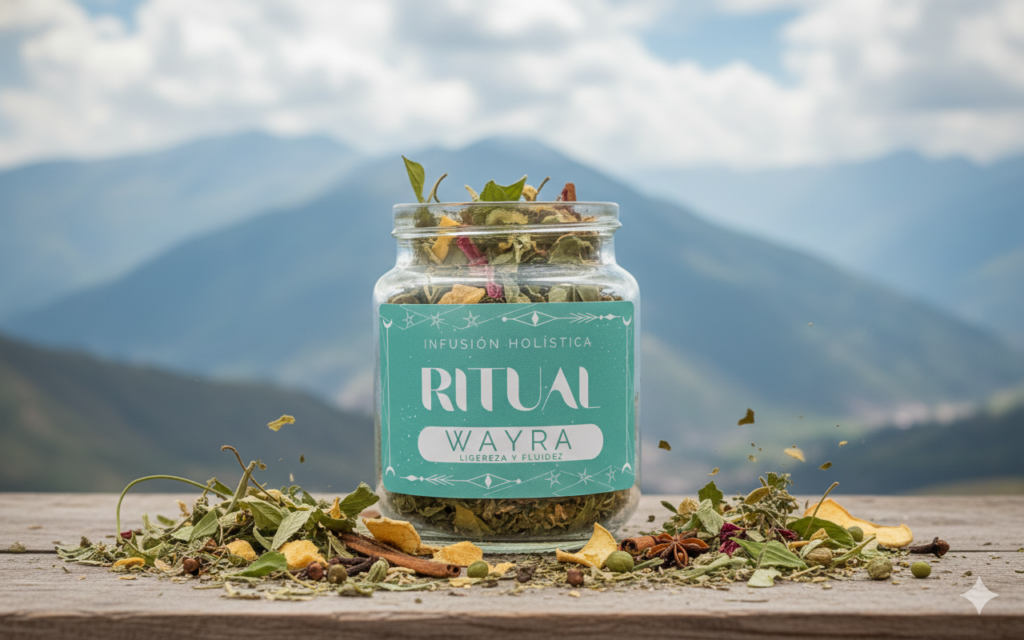 Wayra es el viento que limpia y libera. Ideal para después de las comidas o cuando buscas liviandad y armonía corporal.
